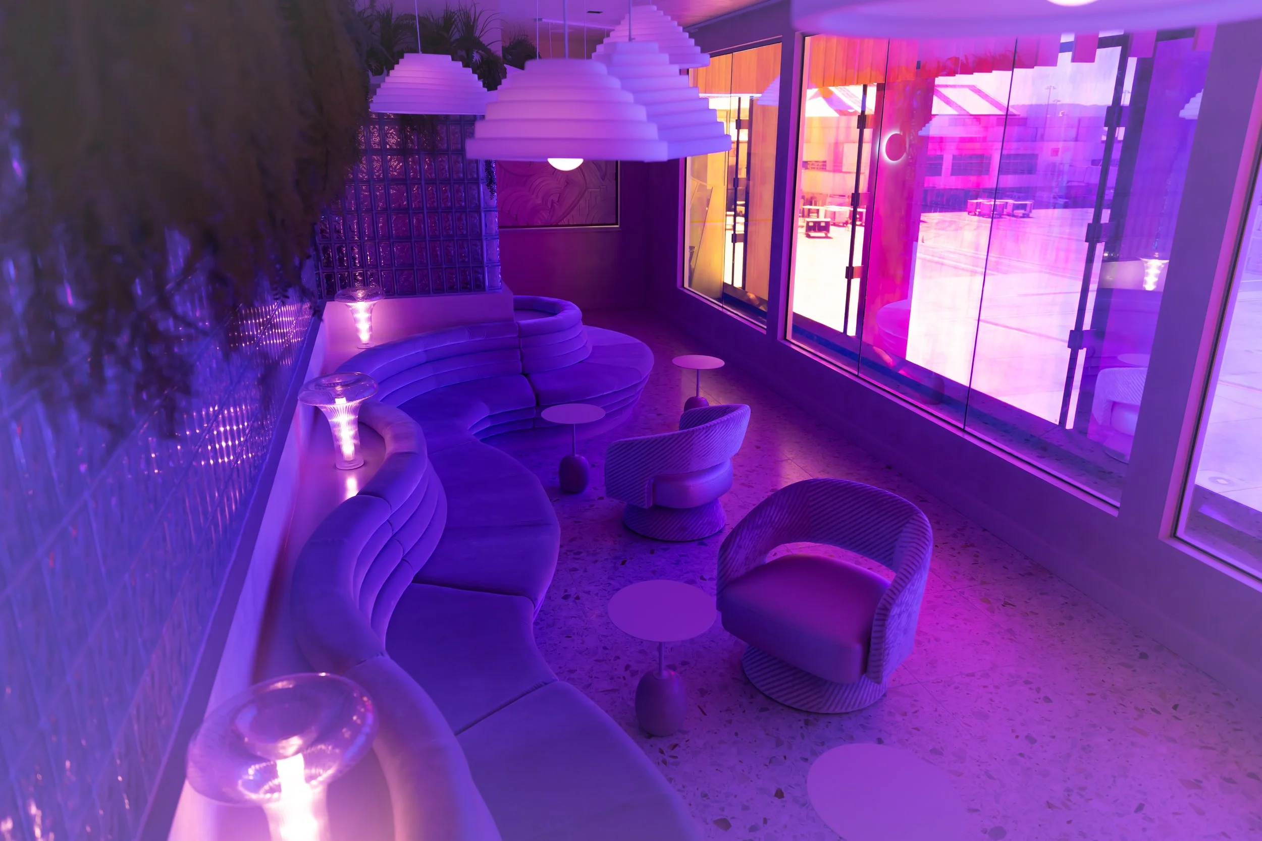 Aurora is a hidden gem located inside Loyal Legion at Portland International Airport-before the TSA checkpoint-inviting curious travelers and locals alike to discover its secret. Marked only with the phrase “Curiosity Opens Doors”. Guests who ask the bar team for the access code step into a luminous world of shimmering color changing glass, silver-leafed ceilings, a curvaceous white concrete bar and plush seating. In the sunlit solarium, enjoy sweeping runway views, the perfect setting to enjoy fun, thoughtful, seasonal cocktails that make every journey feel inspired. No boarding pass needed to enjoy Aurora. Designed by Portland’s woman-owned ELK Collective.